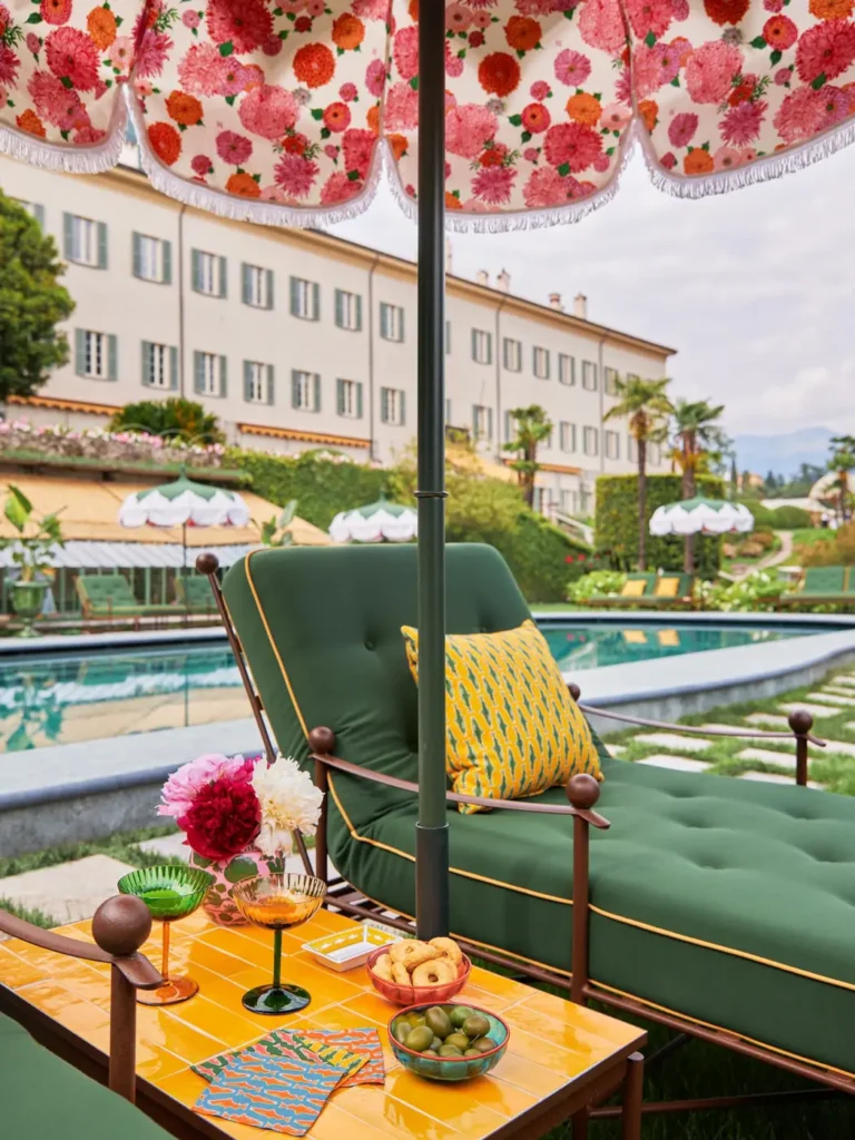 Piscina cu vedere la mare a hotelului Moerana oferă mai mult decât o doză de la dolce vita. Dacă fotograful jet-set Slim Aarons ar mai fi prin preajmă, ni l-am putea imagina imortalizând oameni frumoși și lipsiți de griji sub acele umbrele drăguțe din petale de crin. Sub baldachinele lor modeste se ascunde o explozie de culoare florală – pentru că ce este eleganța fără bucurie?